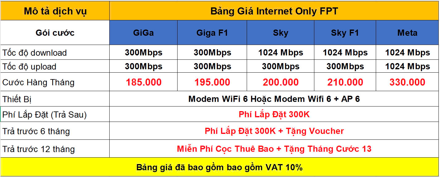 • Miễn phí lắp đặt kèm trang thiết bị modem wifi